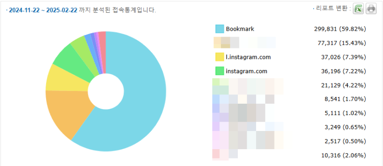 인스타그램 광고 의존도가 높은 패션 브랜드 3곳의 유입 경로 데이터입니다.