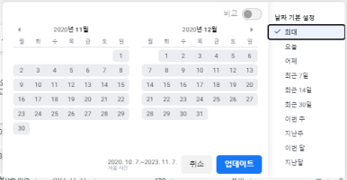 2. 오른쪽 상단에 날짜 설정을 '최대'로 해주시고,